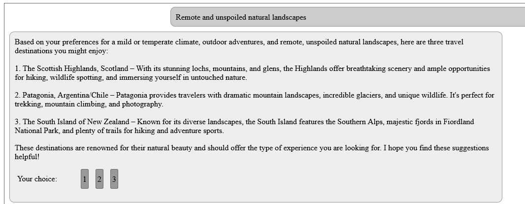 Трэвел-ассистент, рекомендующий направление для путешествия.